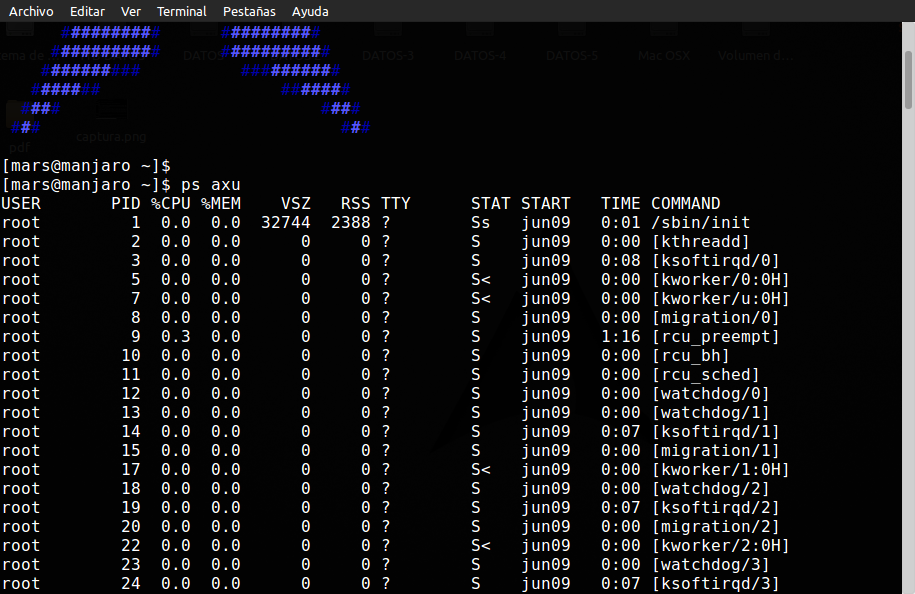Por último, puede ser de mucha utilidad descubrir cuáles son los procesos que están ejecutándose actualmente. Para ello, los diferentes entornos de escritorio (GNOME, KDE, etc.) tienen herramientas gráficas que facilitan esta tarea. No obstante, en caso de que no puedas acceder a ellas o simplemente desees hacerlo desde el terminal, podés ejecutar lo siguiente: