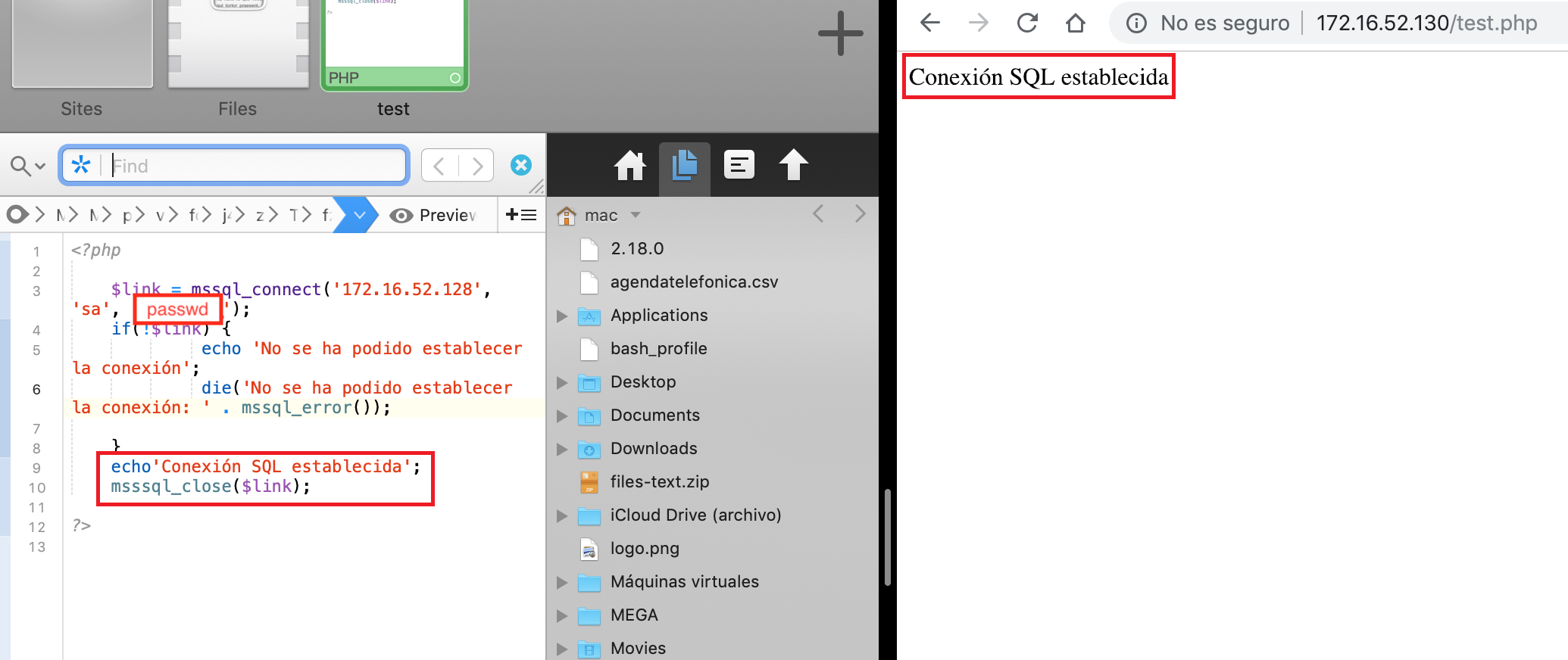 Igual que con el info.php el archivo test.php lo copiamos al directorio web y llamamos al archivo desde la url del navegador: