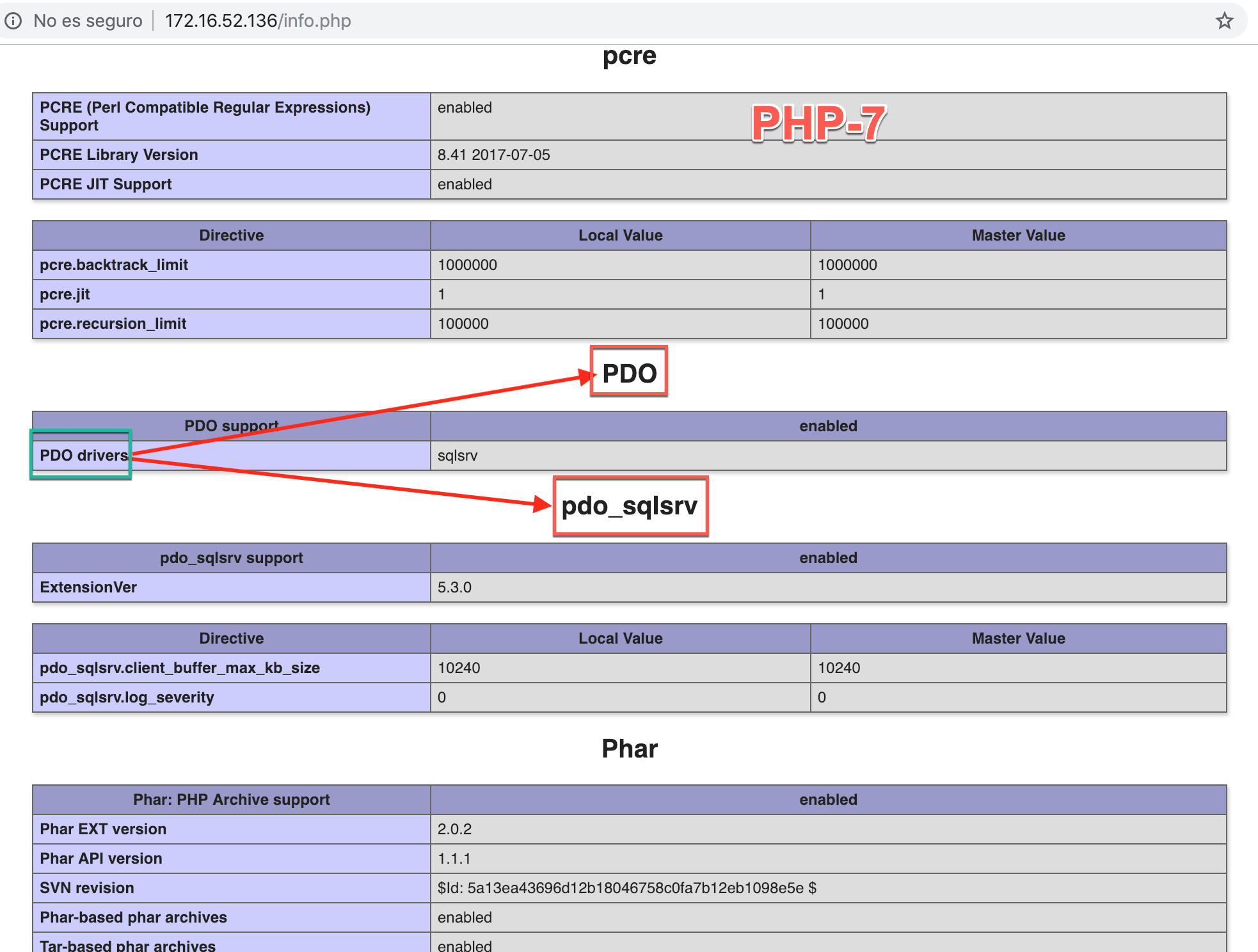 Podemos ver en phpinfo si tenemos la libreria freetds activa: Para comprobarlo creamos un archivo de nombre info.php con el siguiente contenido: